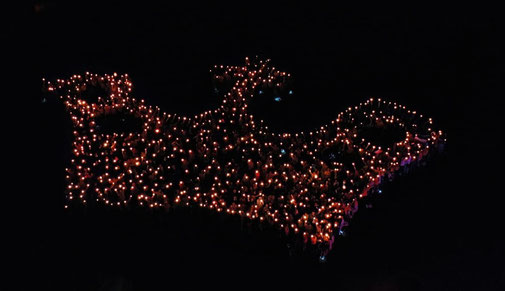 Am Abend fand das Highlight des Jubiläums statt: Der "Let's shine"-Abend. Neben Anbetung, Impulsen und Musik zogen wir in einer Lichterprozession zum Urheiligtum. Auf unser "Ja" hin erneuerten wir das Bild der lebendigen Krone. Wir standen in der abgesteckten Krone auf der Wiese, hielten unsere Kerzen hoch, sangen und jubelten. "Die Krönungsnacht war ein ganz besonderes Highlight, als wir zusammen die Nacht mit unseren vielen kleinen Kerzen erhellt haben und wortwörtlich zur RTA-Krone wurden", erzählte eine Trägerin.