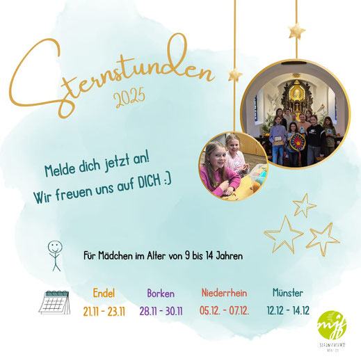 Wir wollen gemeinsam die Adventszeit genießen und uns auf Weihnachten einstimmen. Freu dich auf ein Wiedersehen mit Freundinnen und das Kennenlernen neuer Mädchen, Musik, Singen und gemeinsame