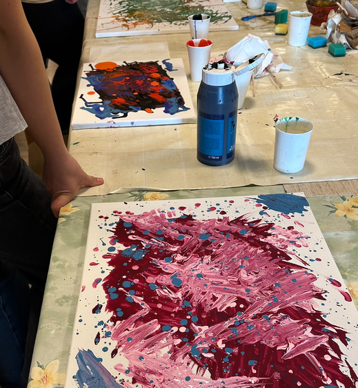 Nach dem Mittagessen wurde es kreativ: Mit einer besonderen Maltechnik haben wir unsere eigenen Leinwände gestaltet. Jedes Bild sah total unterschiedlich und richtig cool aus! Am Nachmittag ging’s dann noch raus auf den Spielplatz, bevor wir abends zusammen gekocht haben. Der Tag endete gemütlich mit dem Film „Briefe an Gott“.